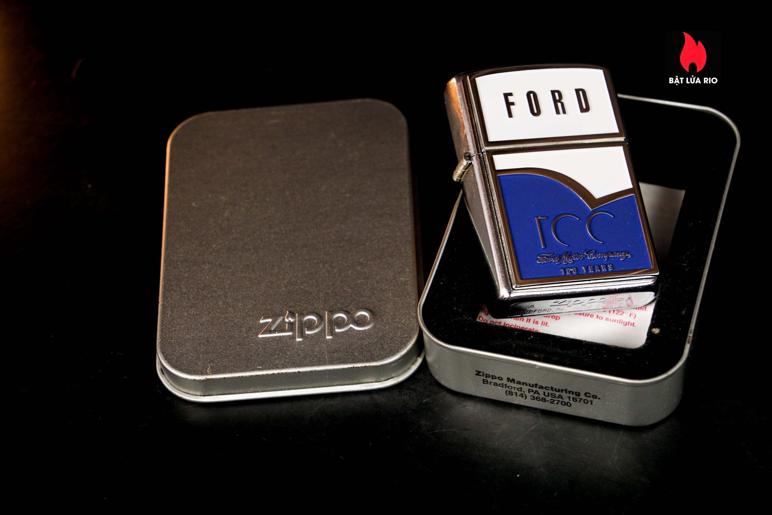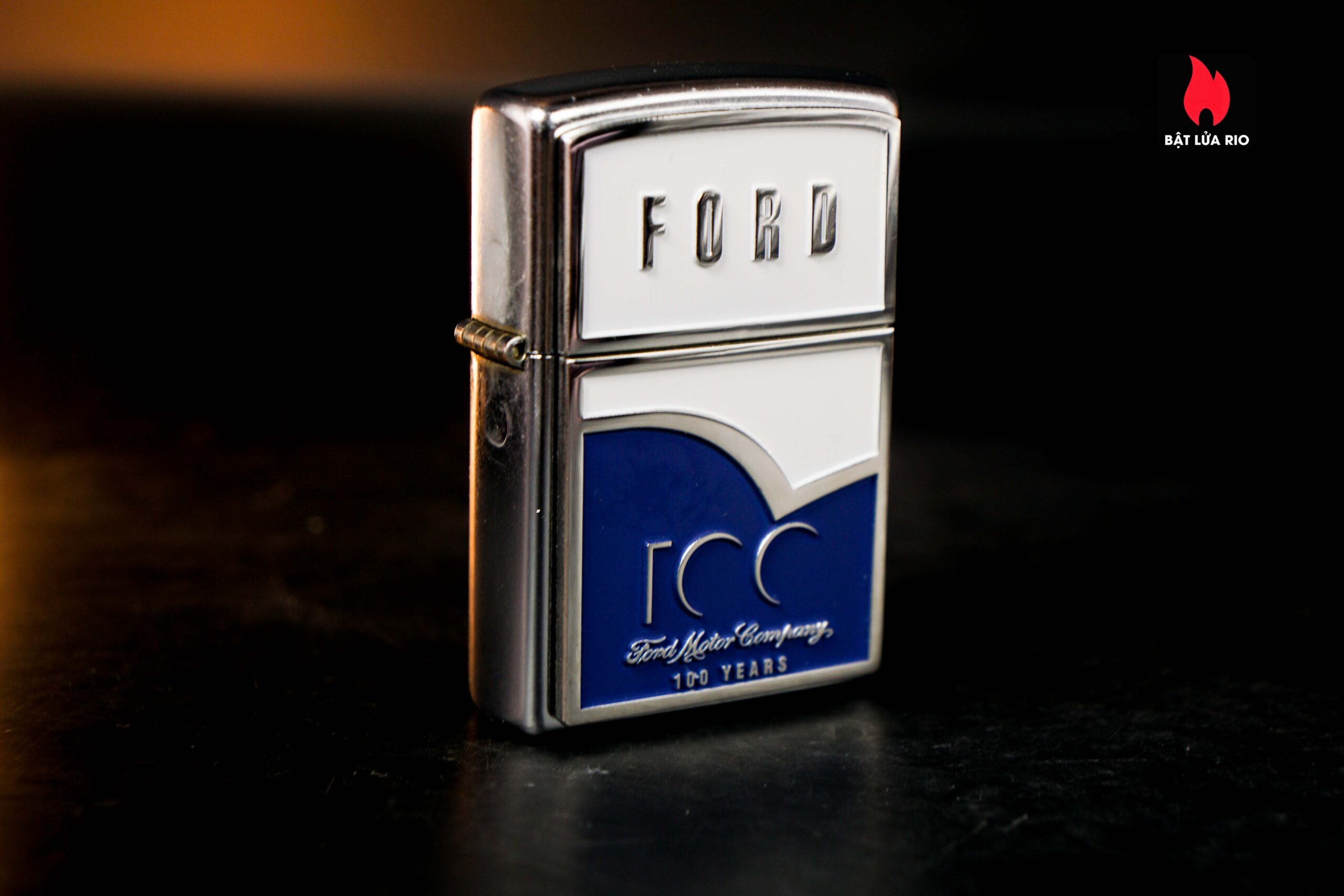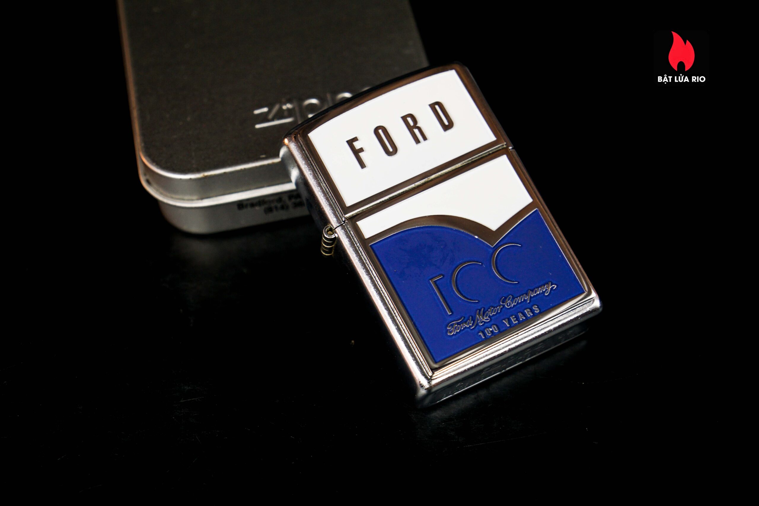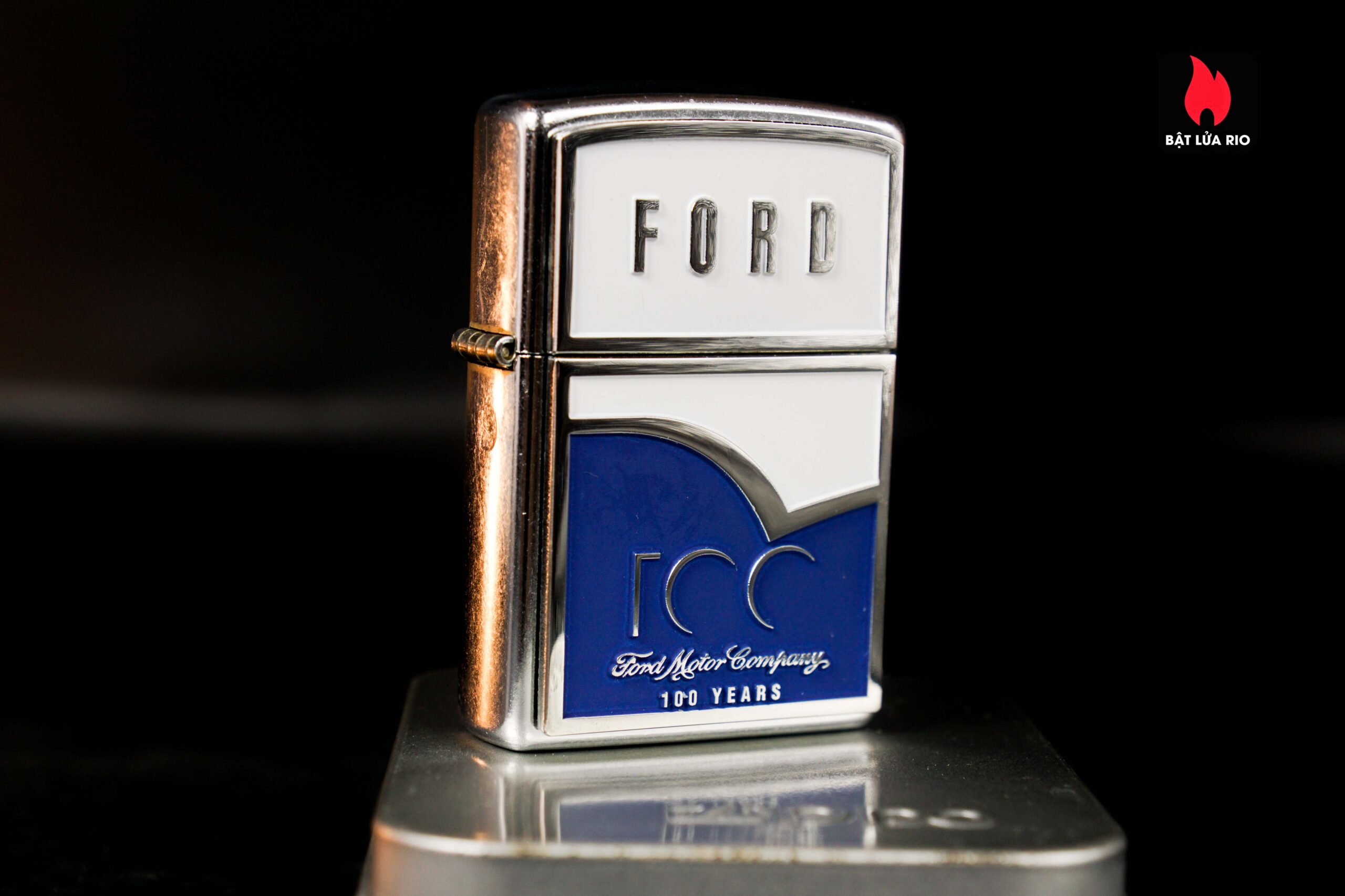 Zippo 2003 – Ford 100th – Blue & White Emblem Stress Chrome