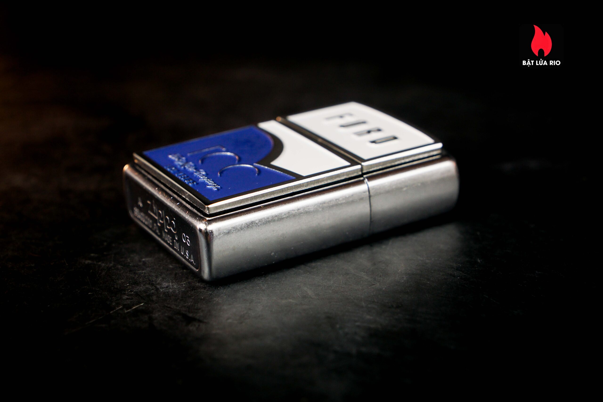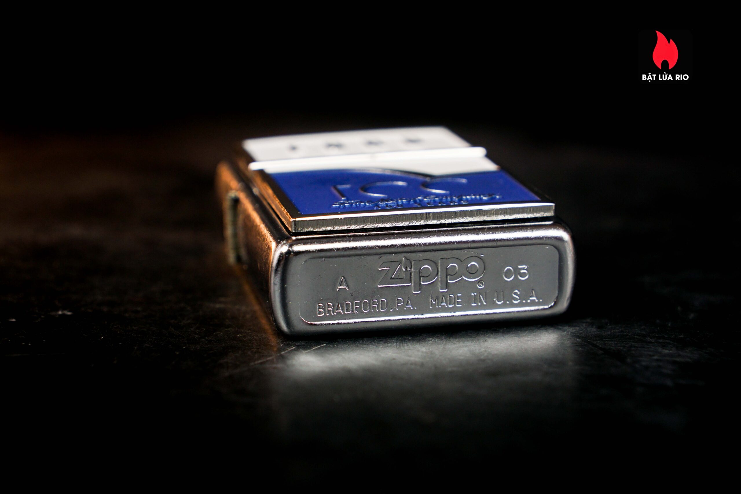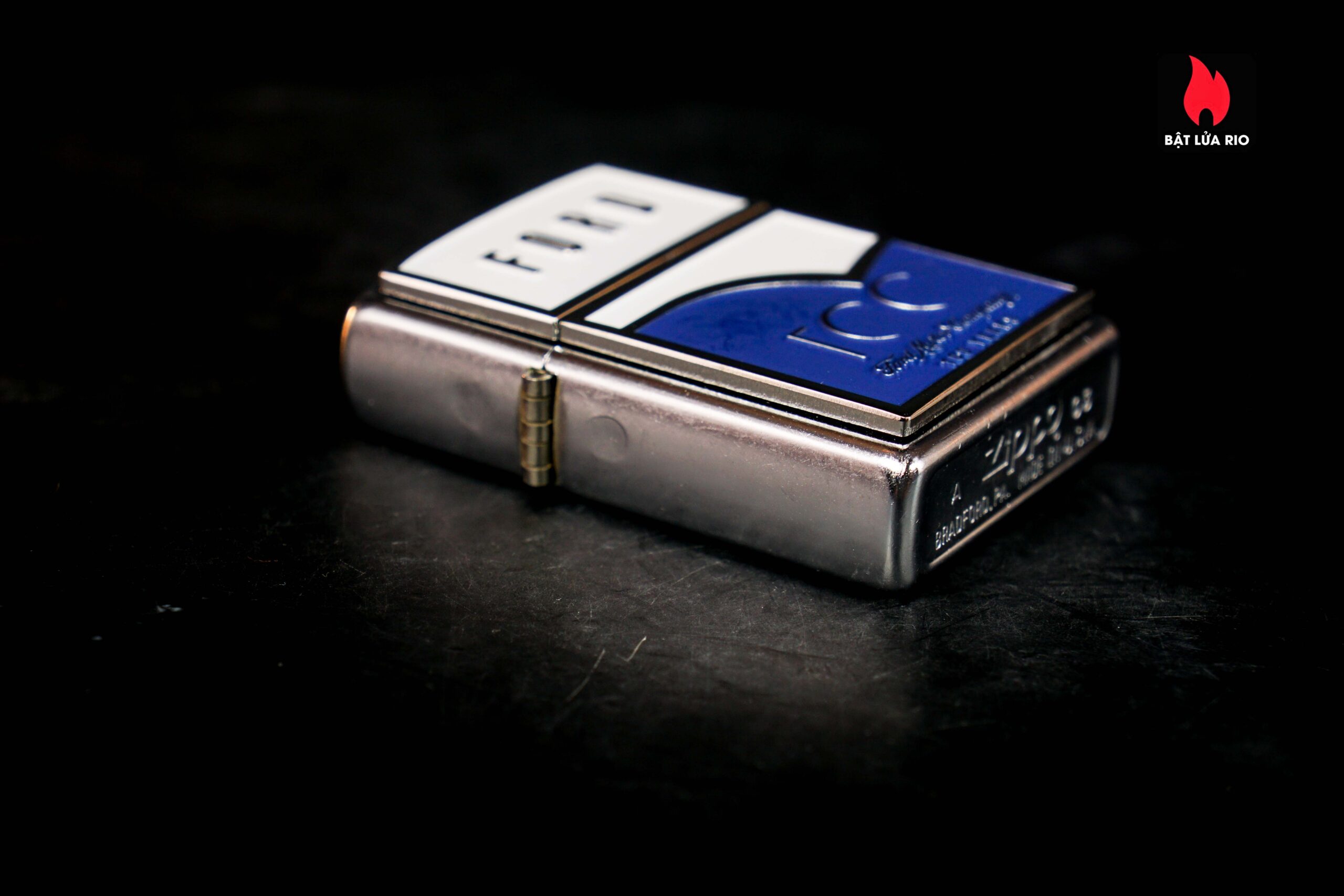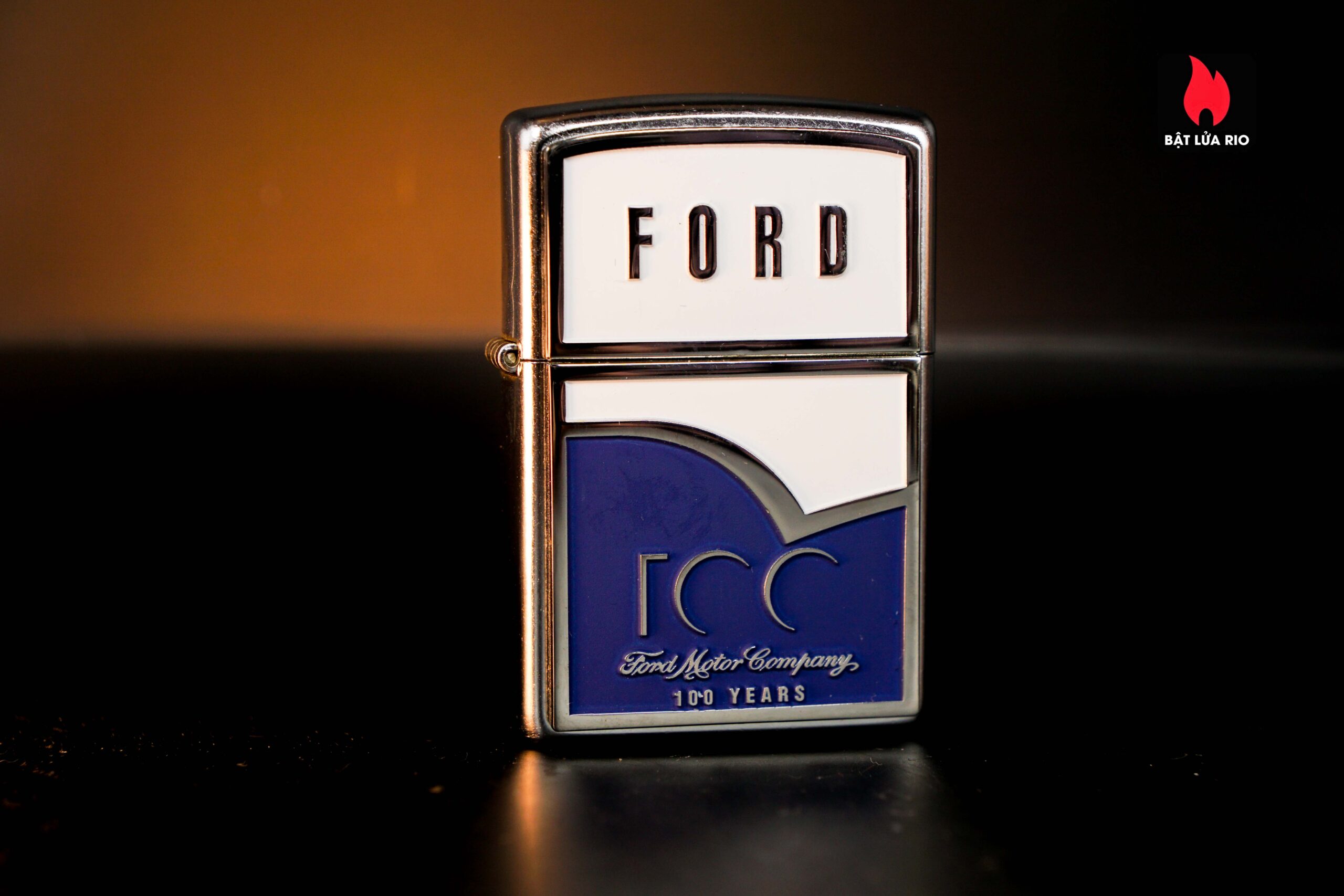 Zippo 2003 – Ford 100th – Blue & White Emblem Stress Chrome