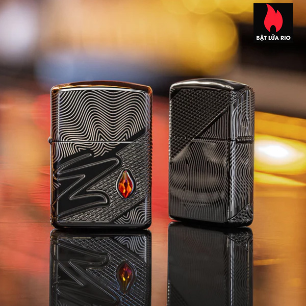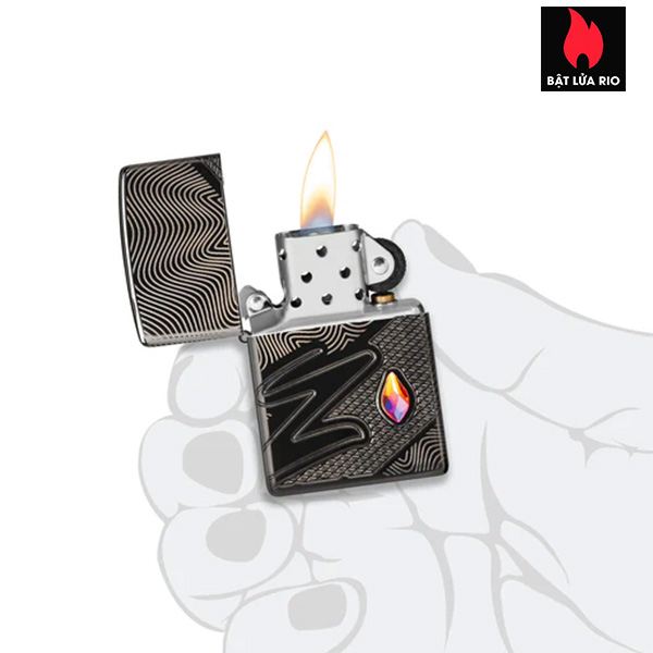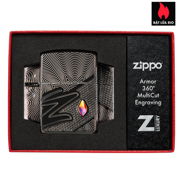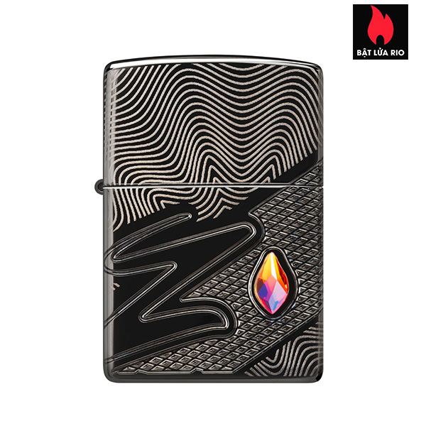 Một viên pha lê lấp lánh tỏa sáng trên bề mặt chiếc bật lửa Armor® High Polish Black này, nằm cạnh chữ Z cách điệu. Thiết kế MultiCut tinh xảo trải dài liền mạch quanh tất cả các mặt của sản phẩm, tạo thêm phong cách và kết cấu sang trọng.