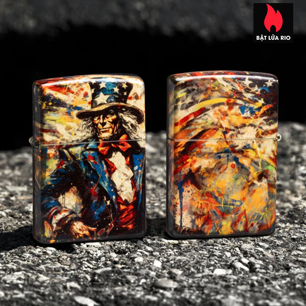 Chú Sam muốn BẠN… bổ sung chiếc bật lửa bằng đồng thau cổ điển này vào bộ sưu tập của mình. Được thiết kế theo kiểu 540 Fusion tuyệt đẹp, hình ảnh chú Sam biểu tượng đứng kiên cường giữa những ngôi sao và sọc cờ Mỹ, trải dài liền mạch quanh tất cả các mặt của bật lửa.