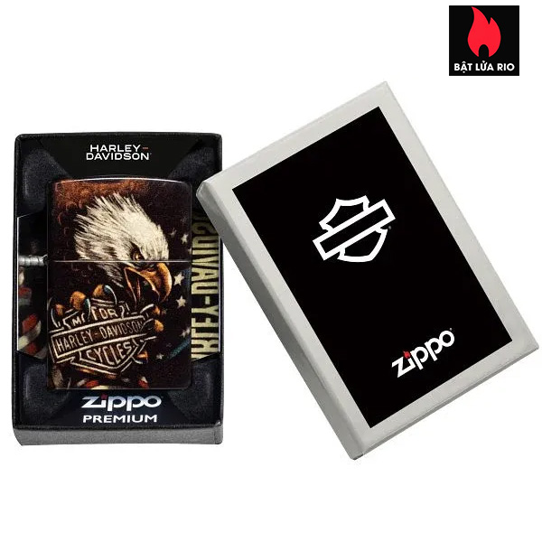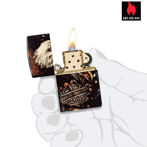 – Thiết kế hình ảnh màu 540 Fusion Hình ảnh đại bàng và logo Harley-Davidson ôm trọn toàn bộ bề mặt bật lửa.