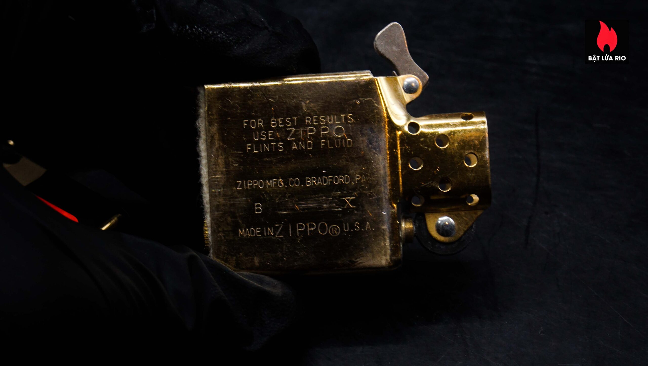 – Zippo trong tình trạng mới chưa sử dụng , ố và xước tơ nhẹ