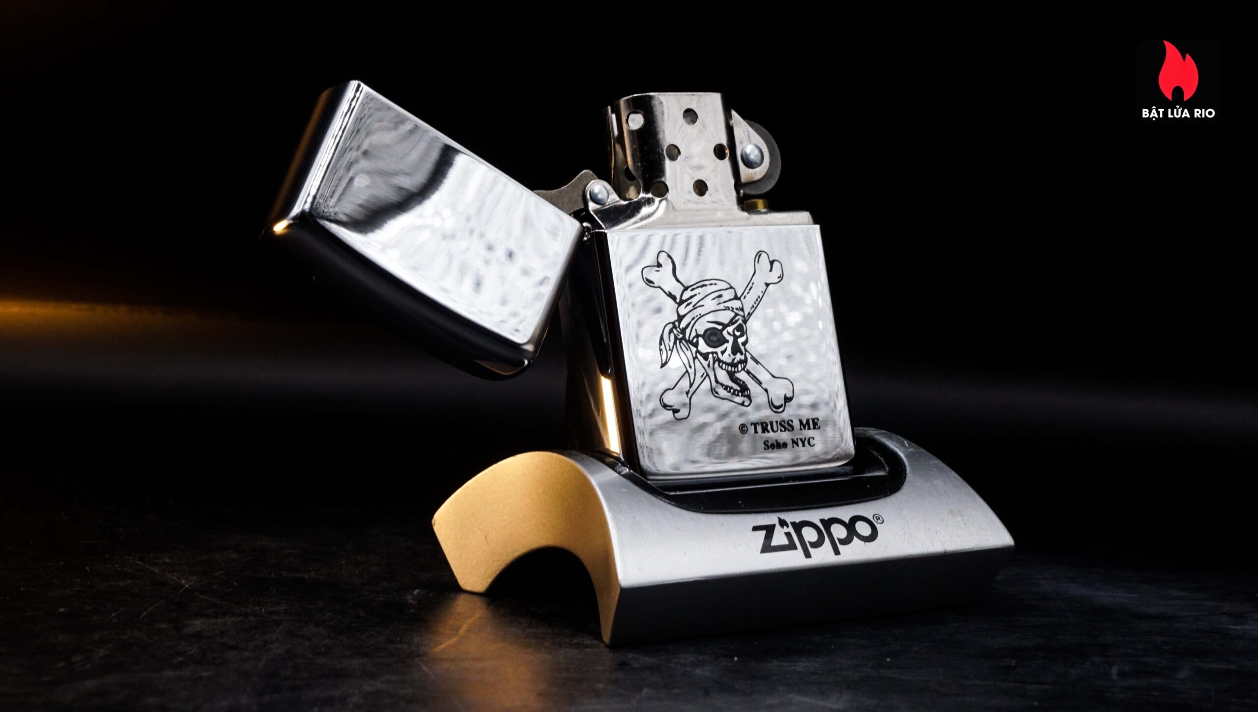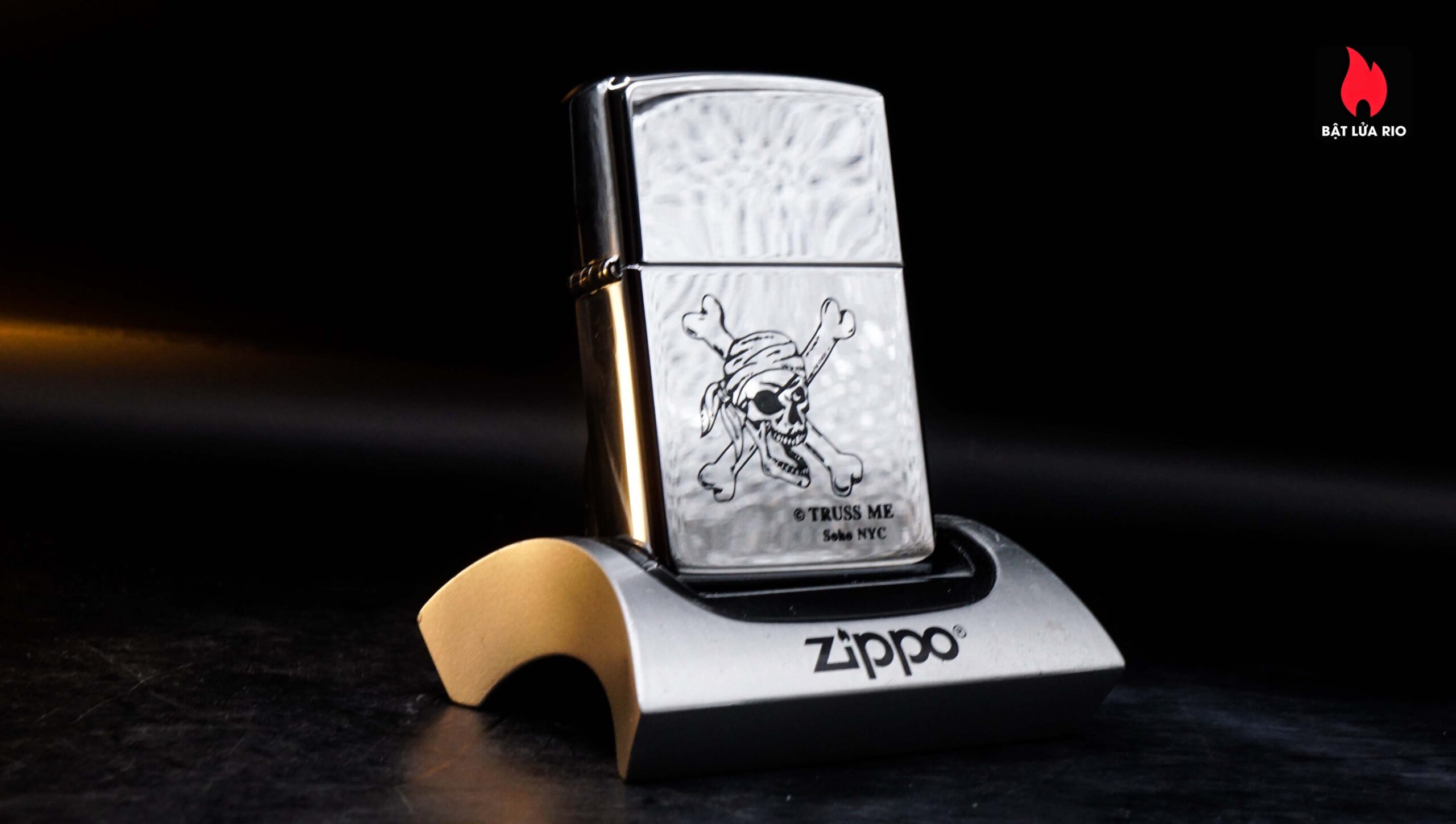Zippo La Mã 1998 – Zippo High Polished Chrome – Truss Me Soho NYC – Skull Series #8