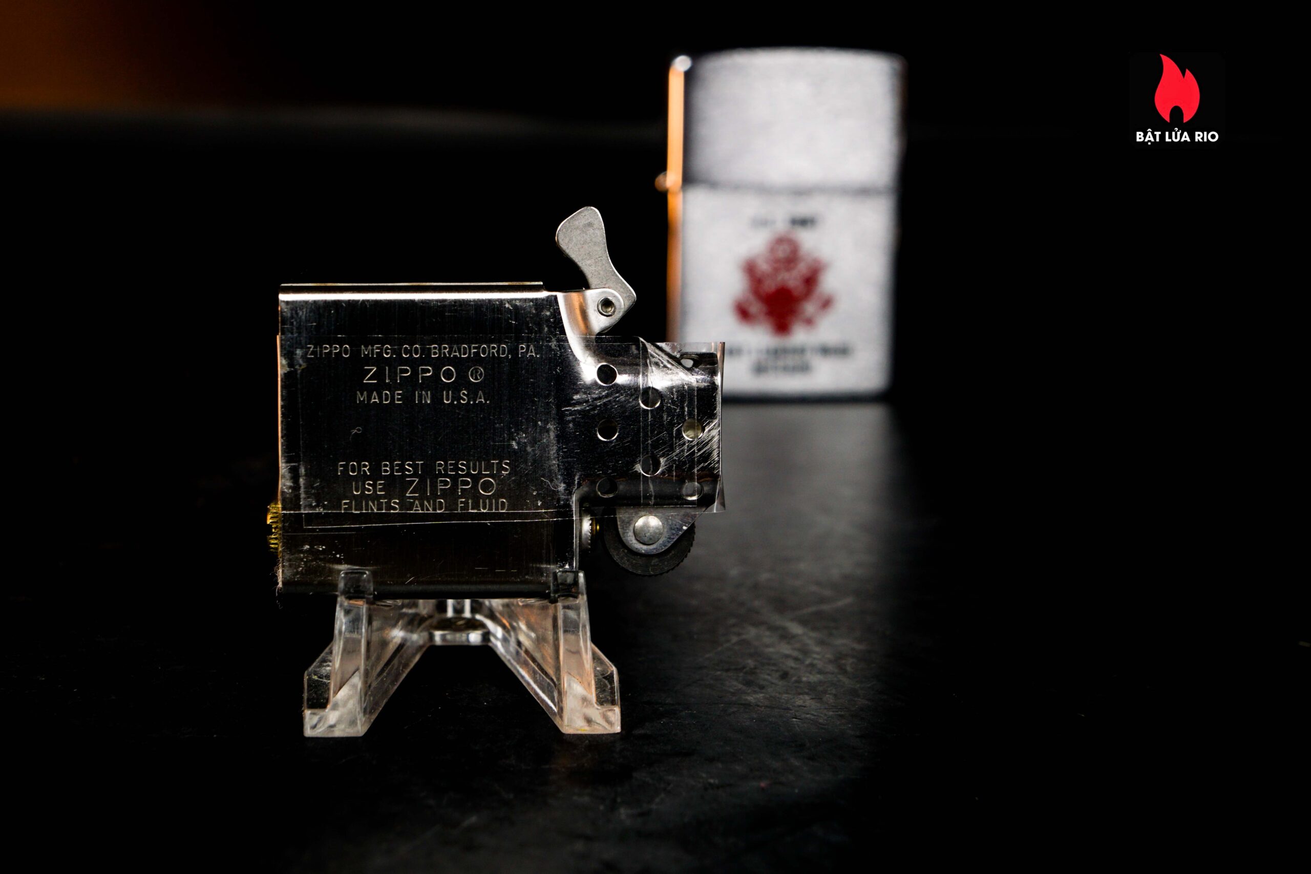 – Zippo trong tình trạng mới chưa sử dụng , có xước nhẹ bên ngoài và buồng đốt